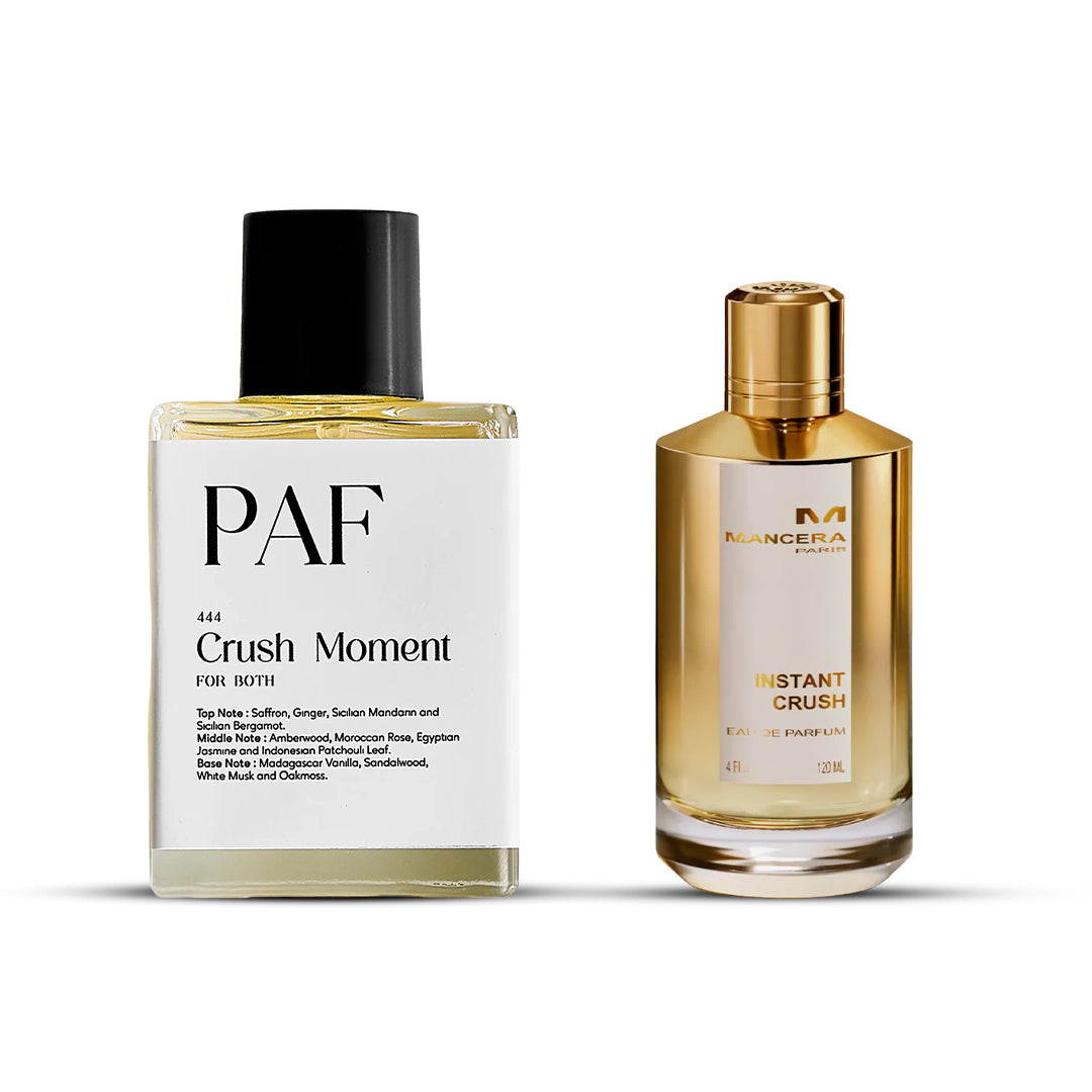Crush Moment is a mesmerizing unisex fragrance that captures the essence of passion and warmth. It starts with vibrant top notes of saffron and bergamot, offering an energetic and inviting opening. The heart unfolds with a luxurious blend of amber and floral accords, adding richness and depth. A base of vanilla, sandalwood, and white musk creates a smooth and sensual finish.